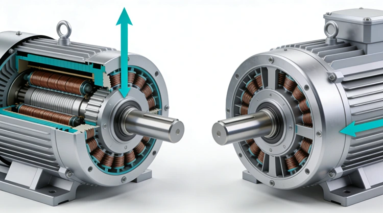 Sections transversales de flux axial (à gauche) et de flux radial (à droite)