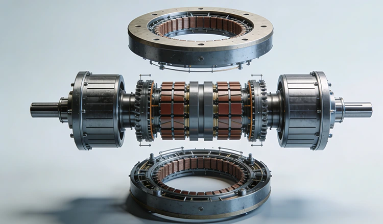 Fixe fermement les pôles d'aimants permanents et supporte des charges alternées provenant de démarrages et d'arrêts à grande vitesse et de commutations fréquentes, garantissant la rigidité structurelle et la précision géométrique pendant le fonctionnement et empêchant la déformation des composants à haute vitesse.